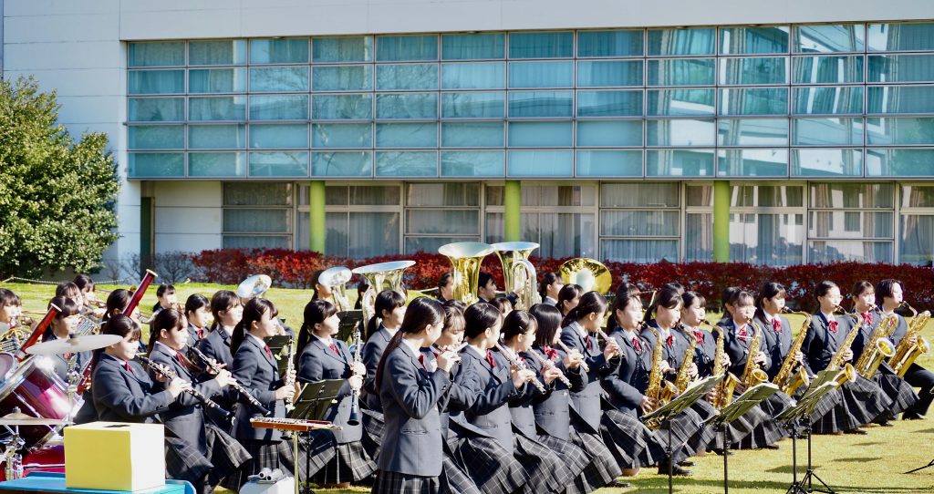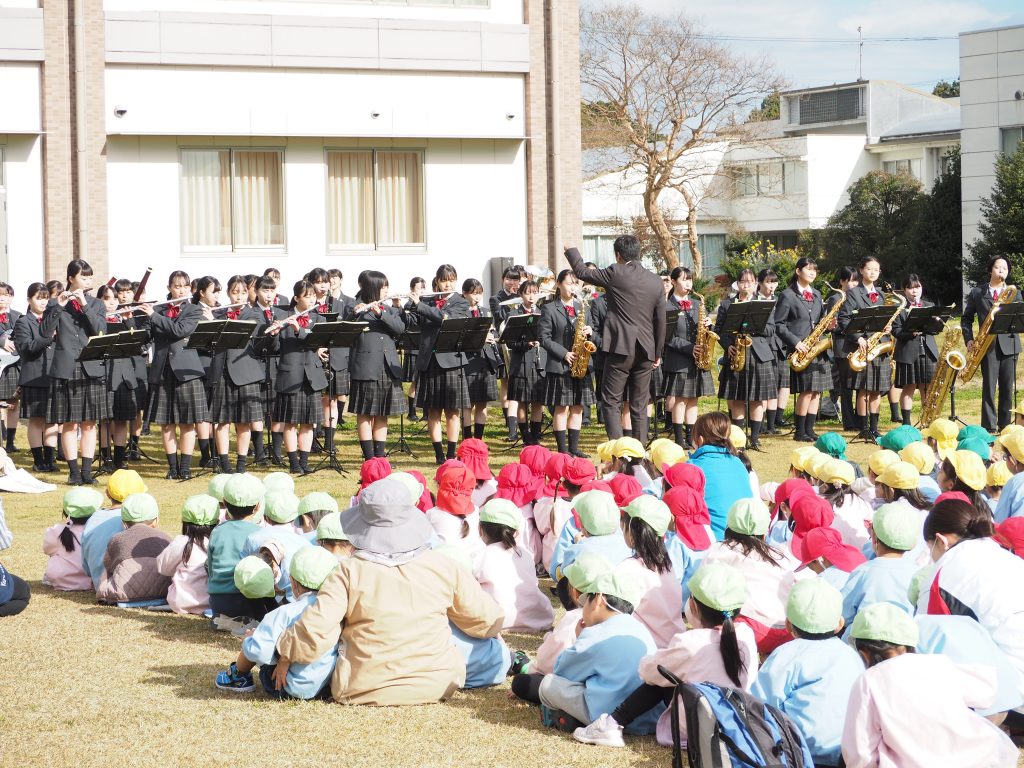 茨城女子短期大学のグランドで大成女子高等学校吹奏楽部のお姉さんたちが素敵なコンサートを開いてくださいました🎺🎷
