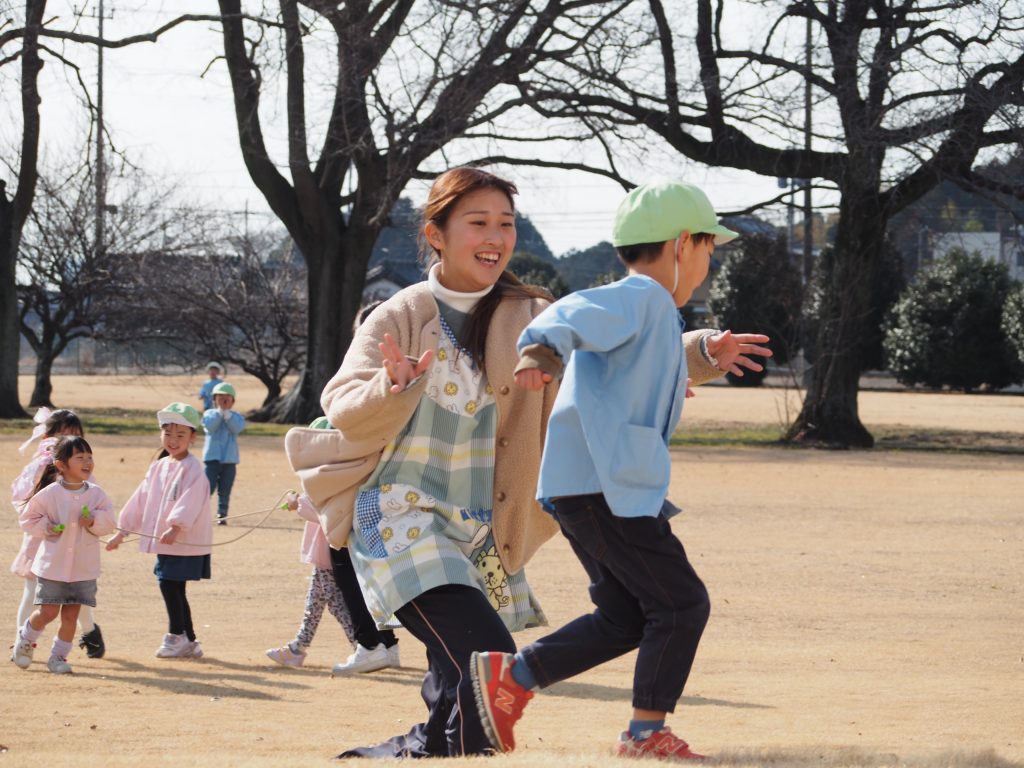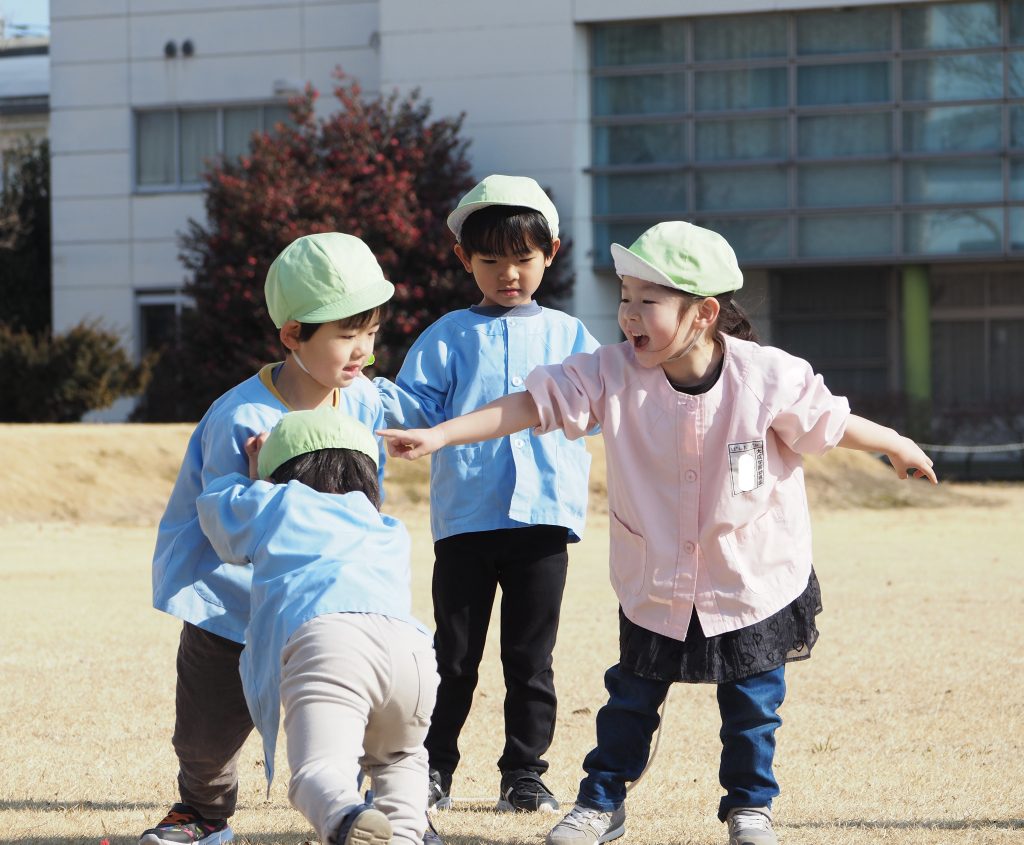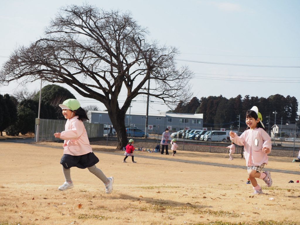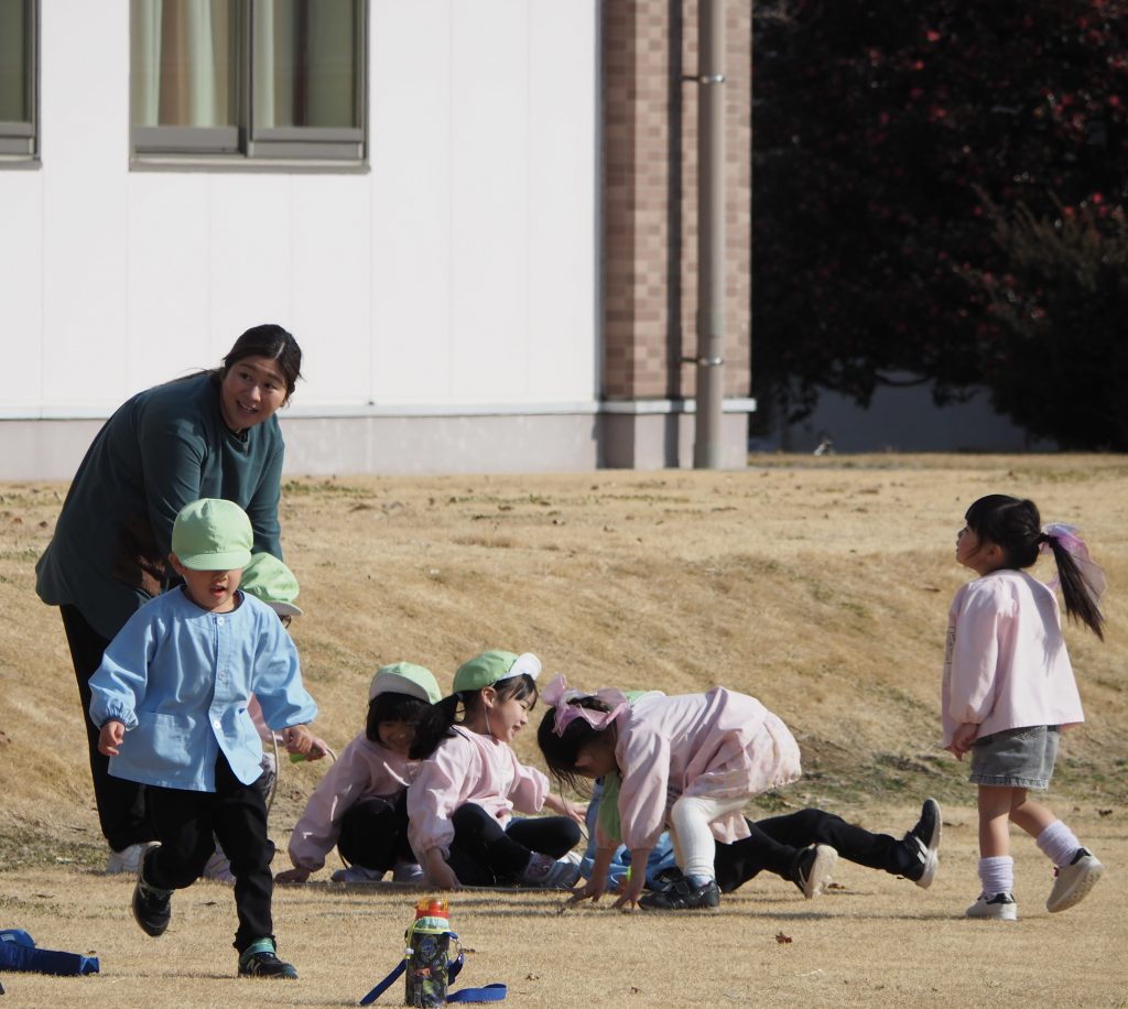 くま組ととら組(4歳児)さんが元気に鬼ごっこや相撲、かけっこをしていました💨