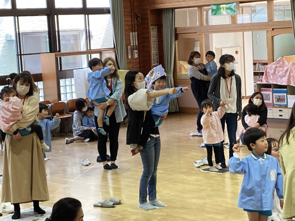 「出かけよう!」「オー!」🎵ゲームセンターになったりボーリングになったりと身体で表現する体操です🎵