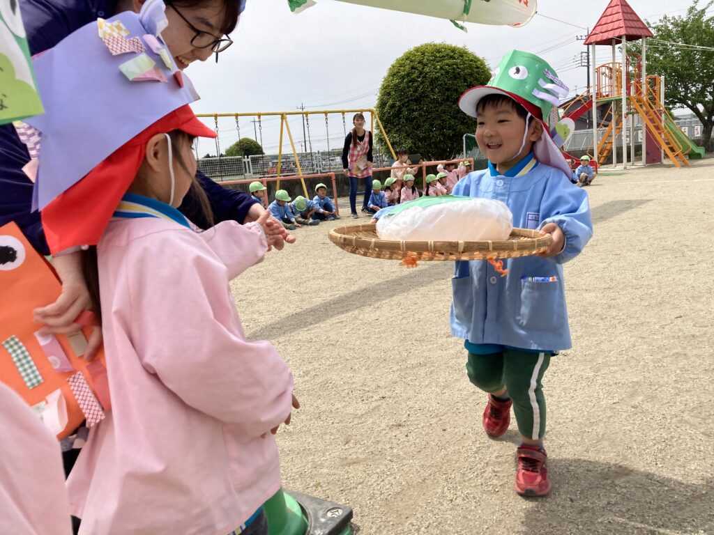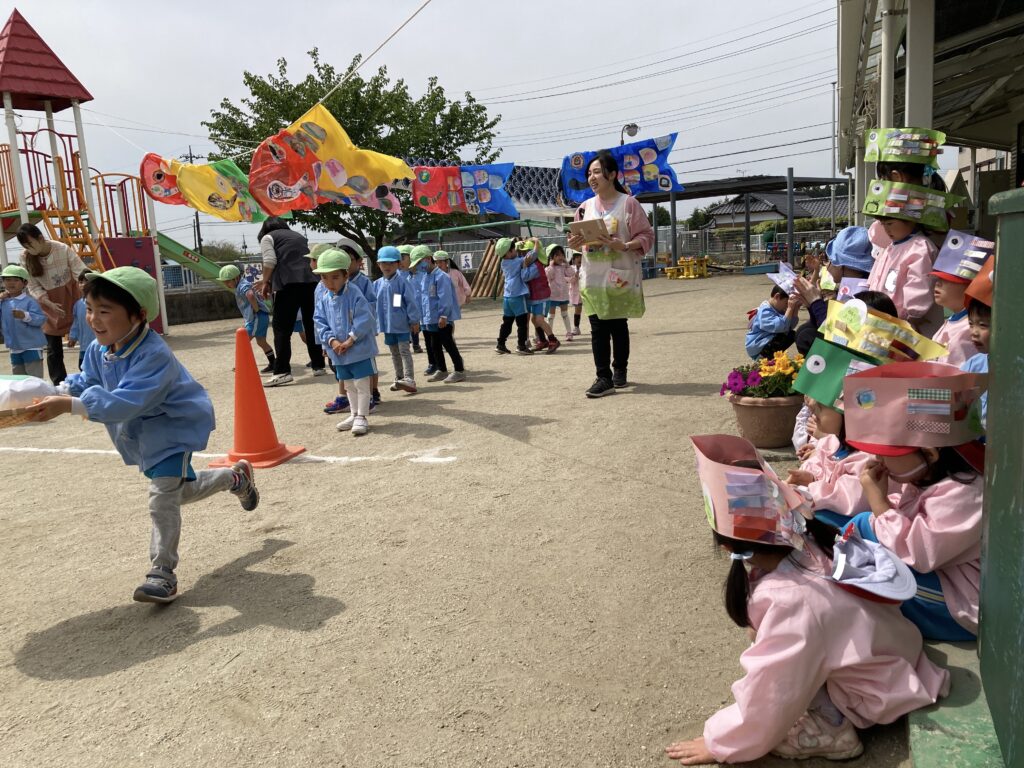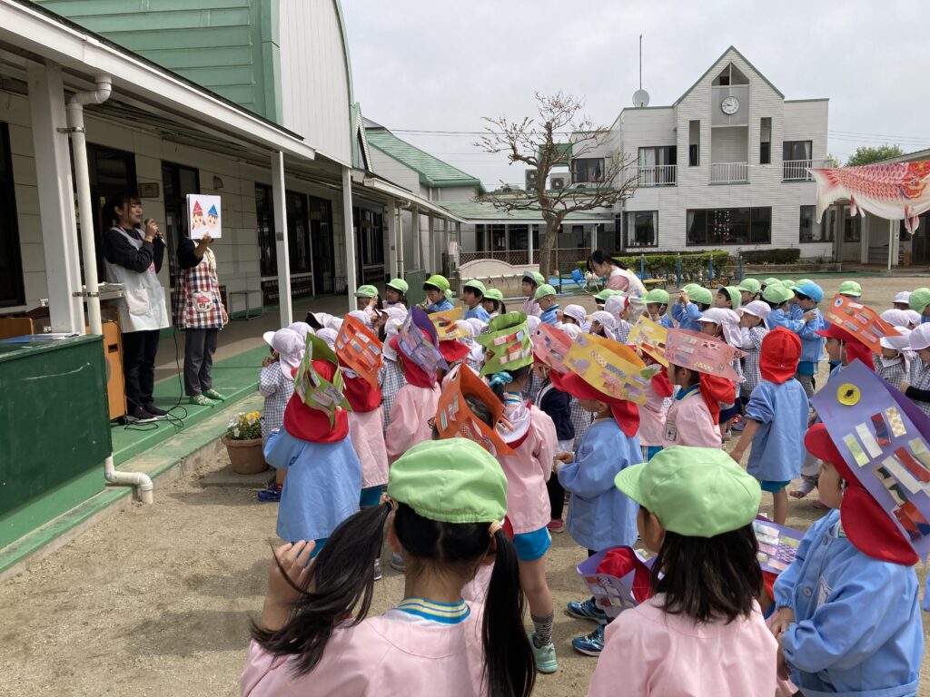 年中組のお友達は自分で作ったこいのぼりの帽子をかぶって参加しました♡