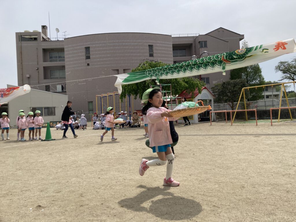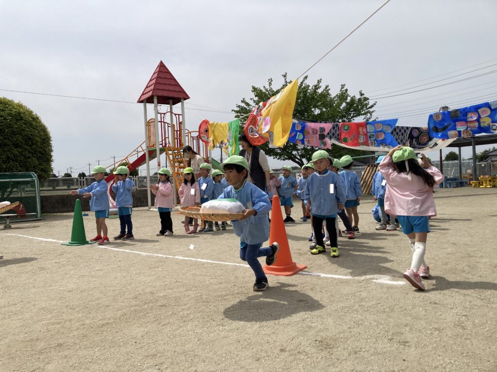 今から柏餅リレーを行います!やる気十分な年長組のこどもたち。