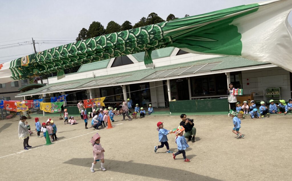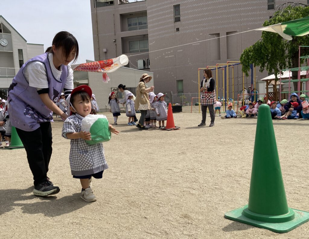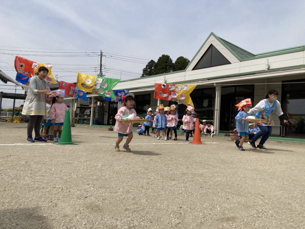 大きなこいのぼりもこどもたちのリレーを見守っています。