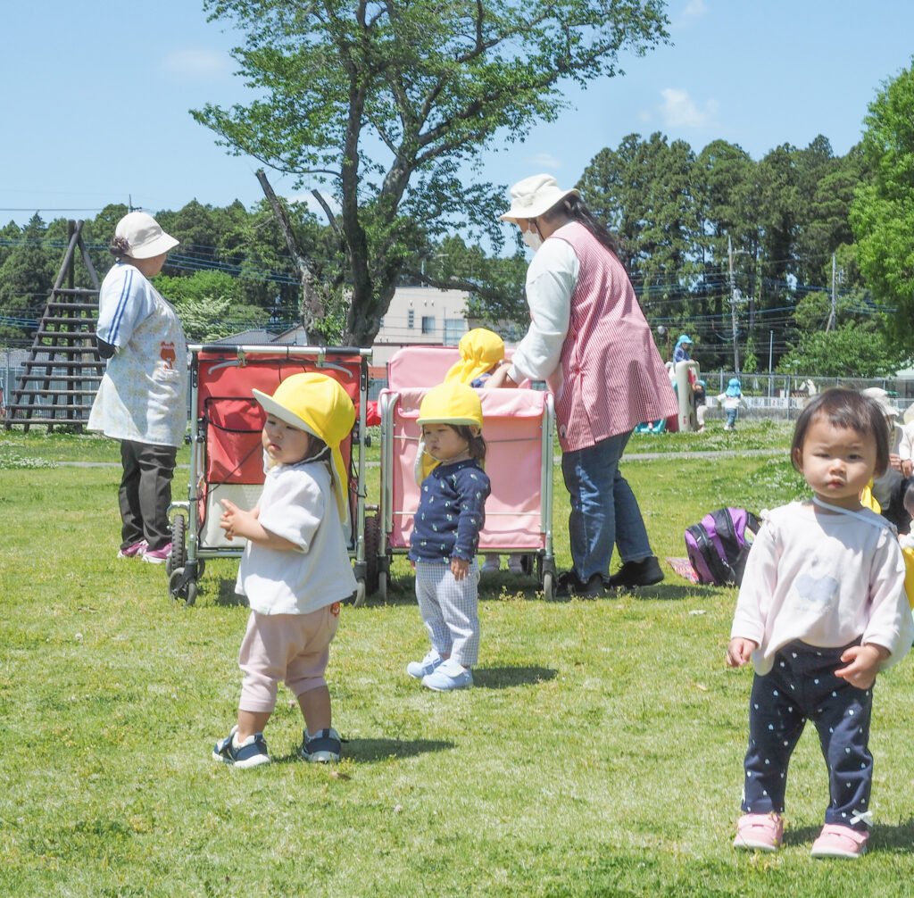 りす組・うさぎ組(0・1歳児)さんたちはお散歩です。