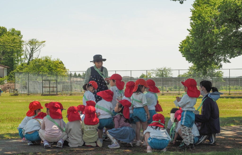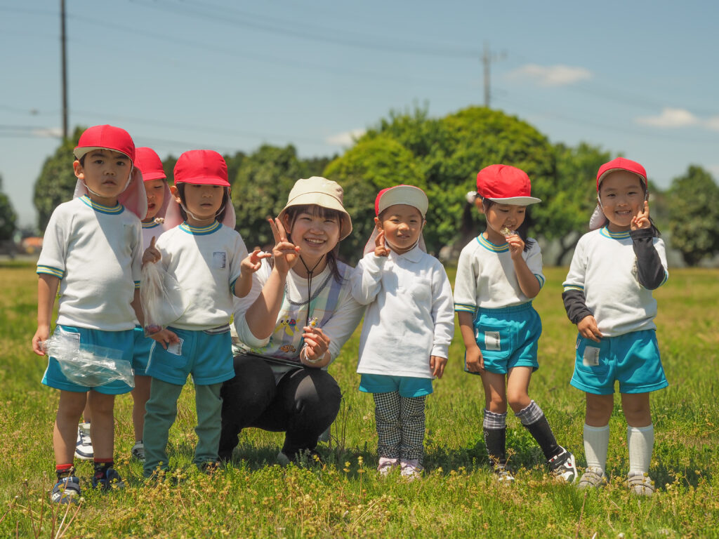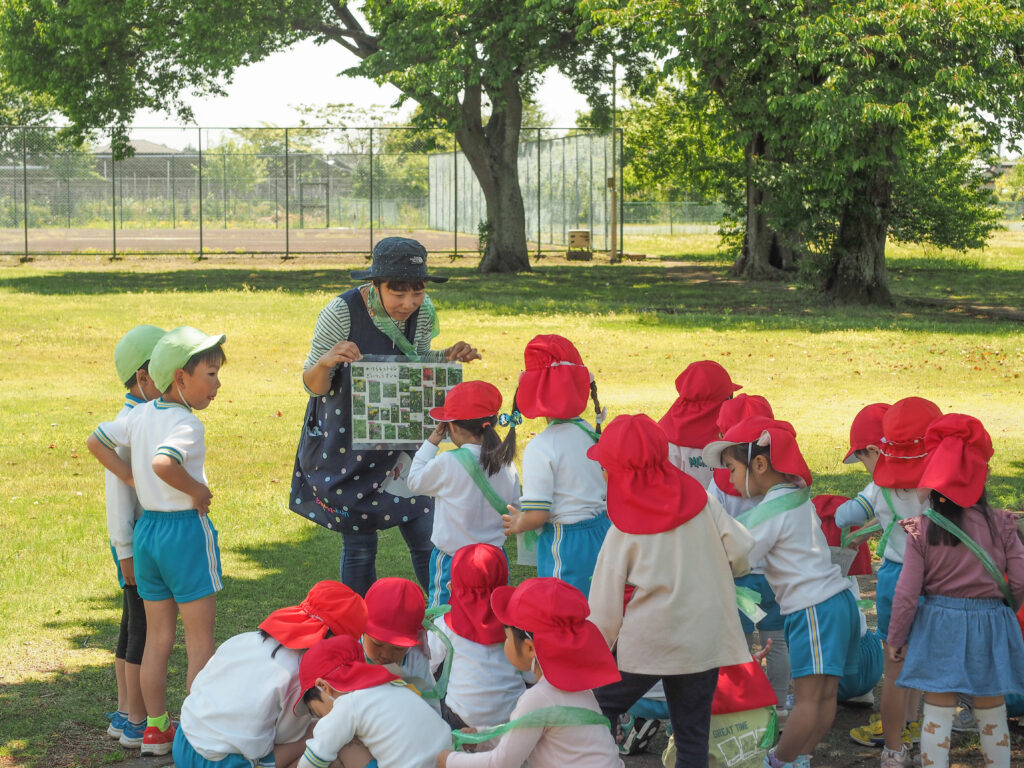 さわやかな晴天の午前中、くま組(4歳児)さんたちが「のはらレストラン」の材料を探していました🍀