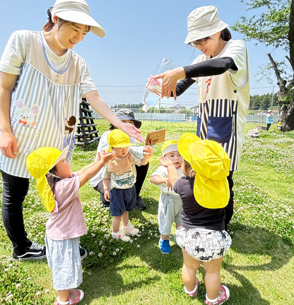 こども園事務室の窓から(ペットボトルシャワーで遊んだよ 2025.5.20) 2025 5/21 ニュース 初夏のような午前中、0・1歳児さんたちが外遊びに出発しようとしていました🚀水筒をもってベビーカーに乗ってGO‼️ ペットボトルのシャワーで水遊び、水の感覚を体感し少しづつ水に慣れていきます💦 お花も摘みました☘️ ニュース URLをコピーしました! おやこひろば“ぽぽ”開催 こども園事務室の窓から(野菜畑の水やり・草取りをしたよ 2025.5.20) コメント コメントする コメントをキャンセルコメント ※ 名前 ※ メール ※ サイト 次回のコメントで使用するためブラウザーに自分の名前、メールアドレス、サイトを保存する。 上に表示された文字を入力してください。 Δ