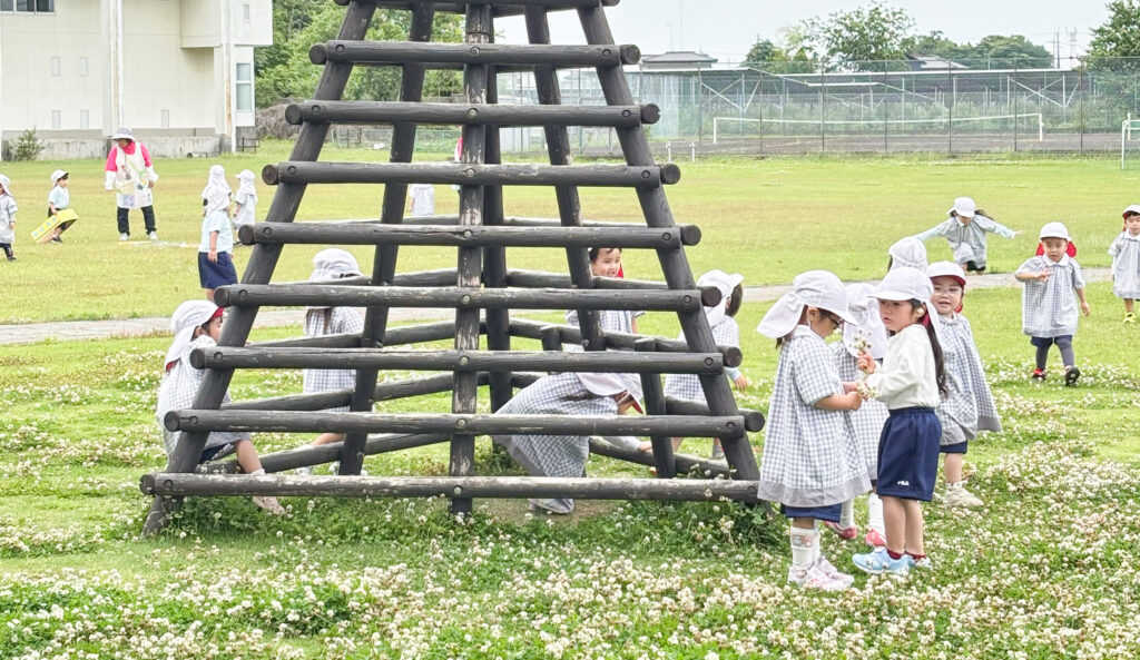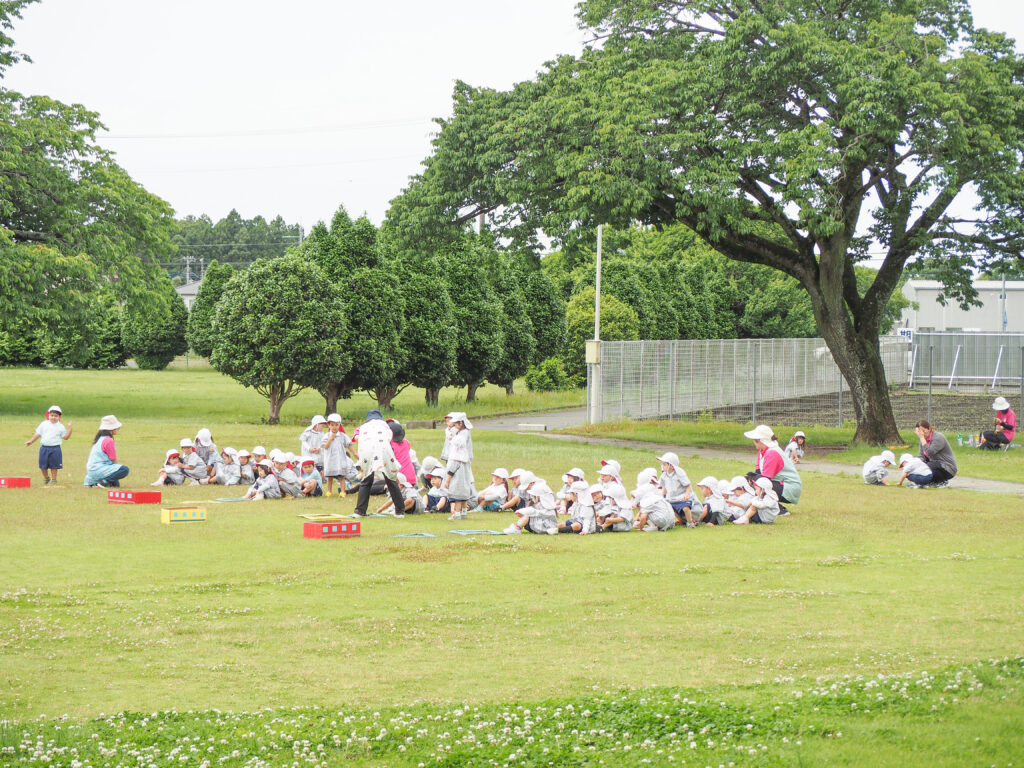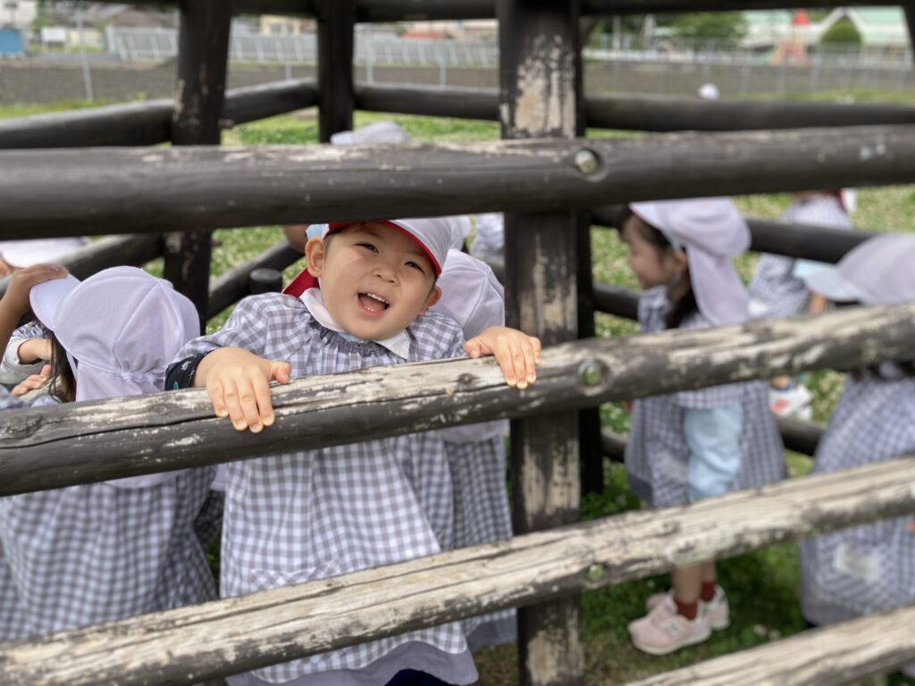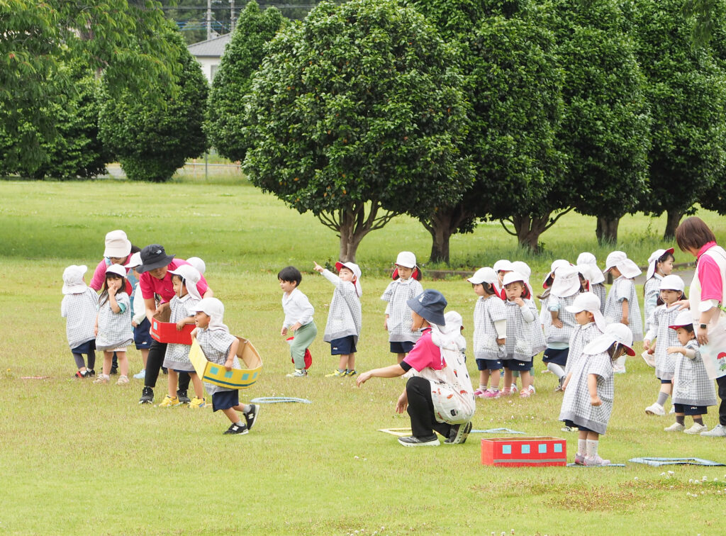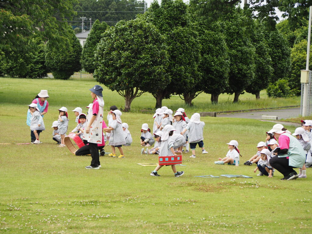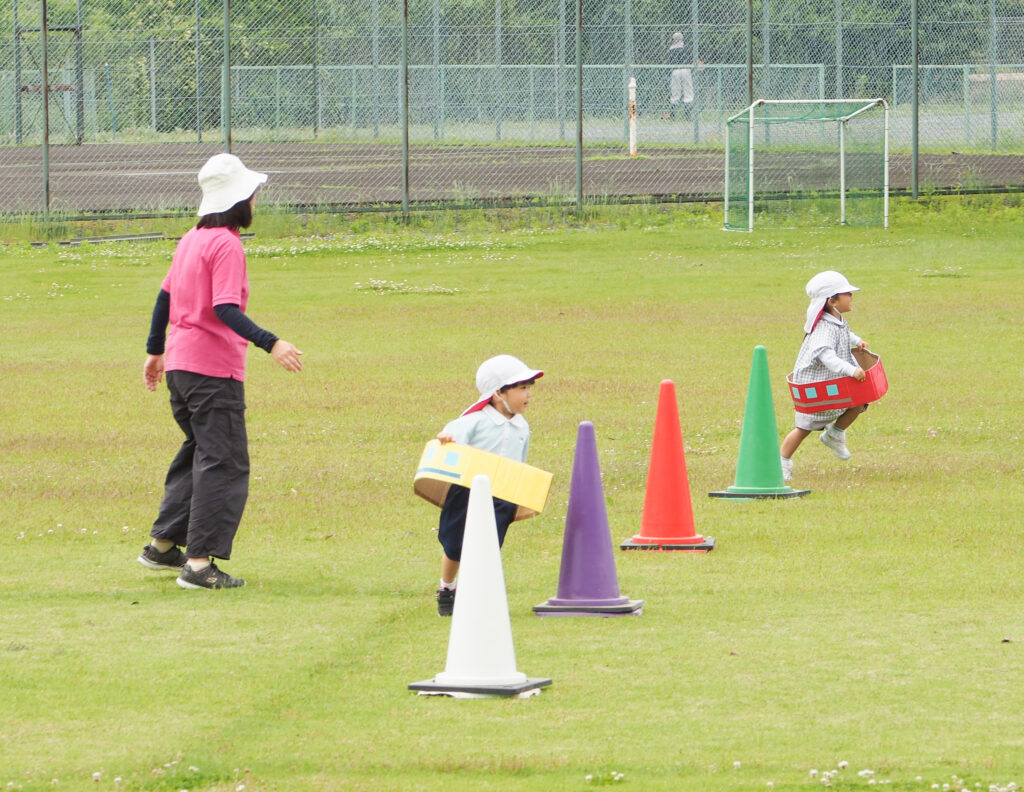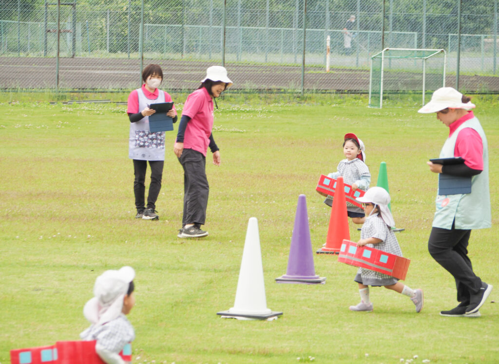 こども園事務室の窓から(3歳児 電車レースPart2 2025.5.26)