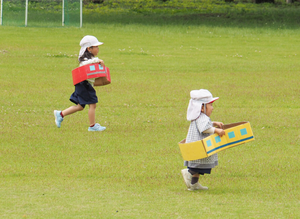 電車レースが大好きなぱんだ組・ひつじ組(3歳児)さんたち🐼🐏