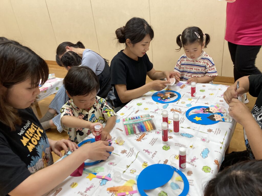 好きな色や柄の折り紙を選んで,親子で一緒に製作しました。