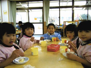 お誕生月ごとに遊戯室のステージに上がり、みんなの前で自分の名前と年齢を発表しました。