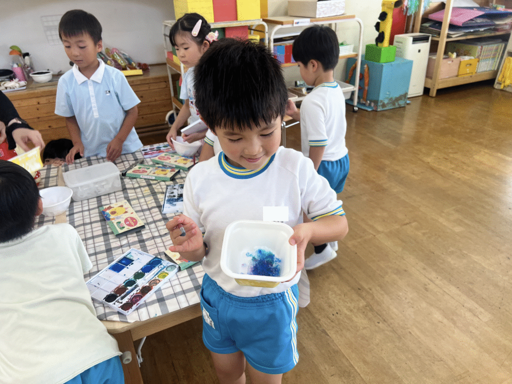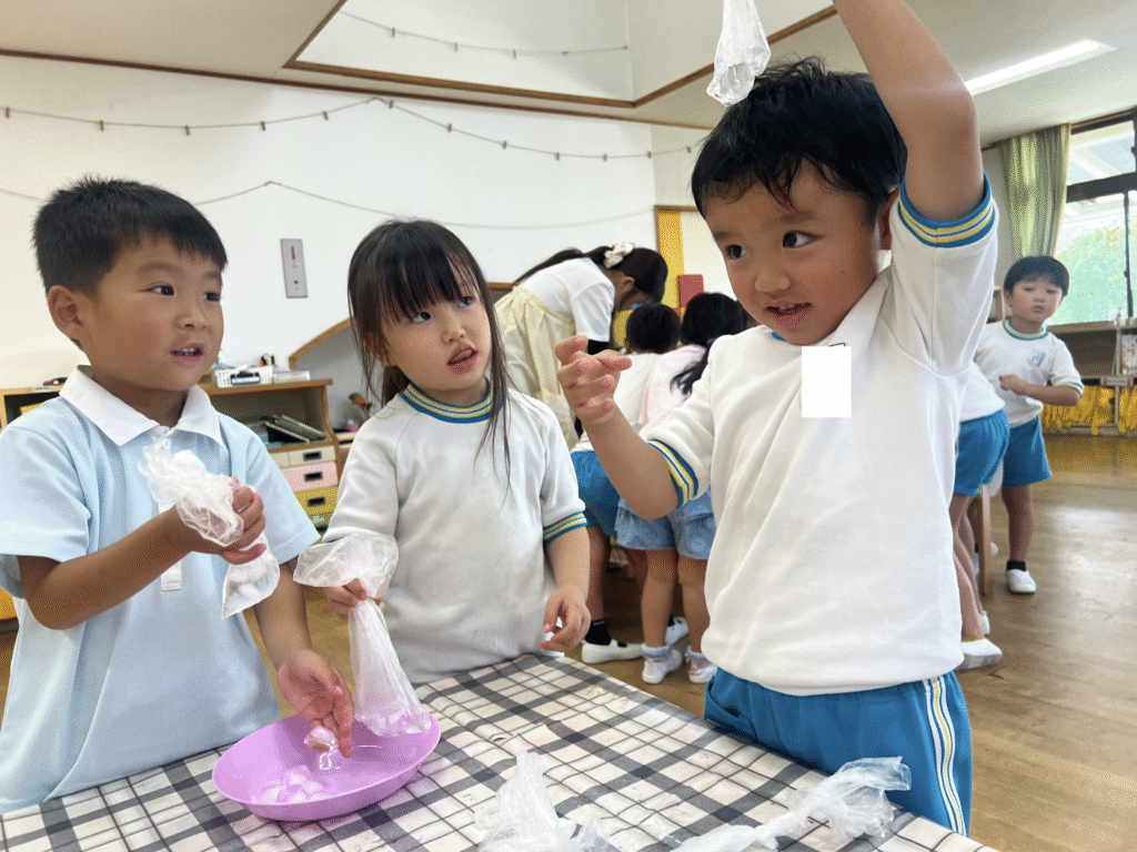 毎日暑い日が続き,熱中症警戒アラートが出ていますが幼稚園のお友達はお部屋の中で様々な遊びを行っています。