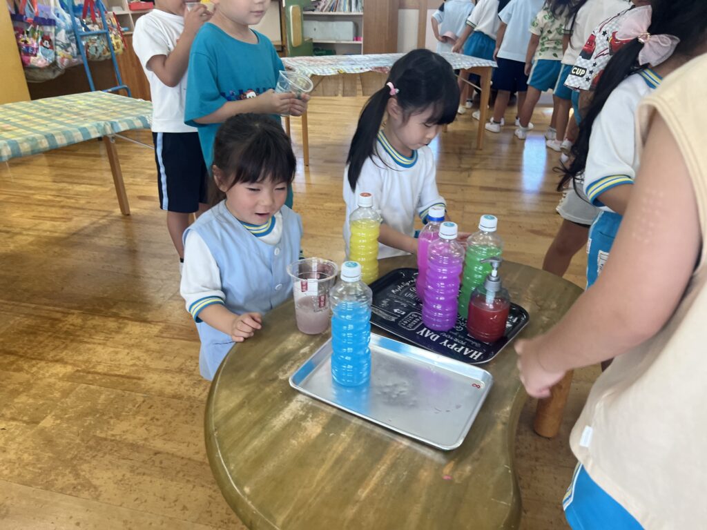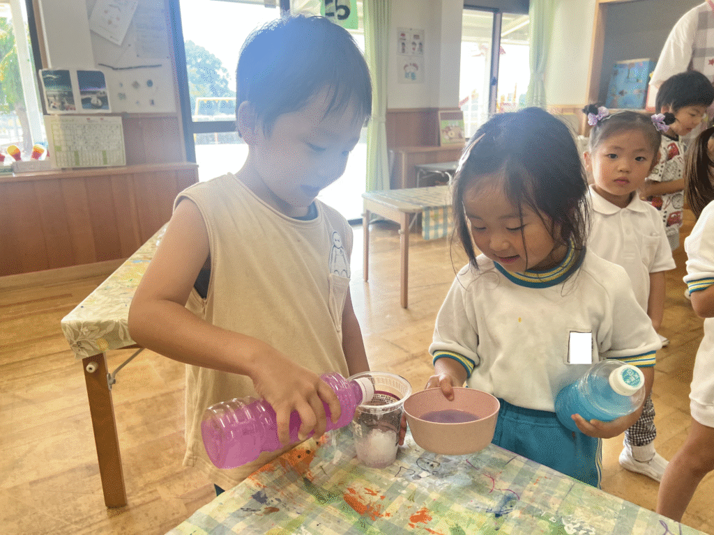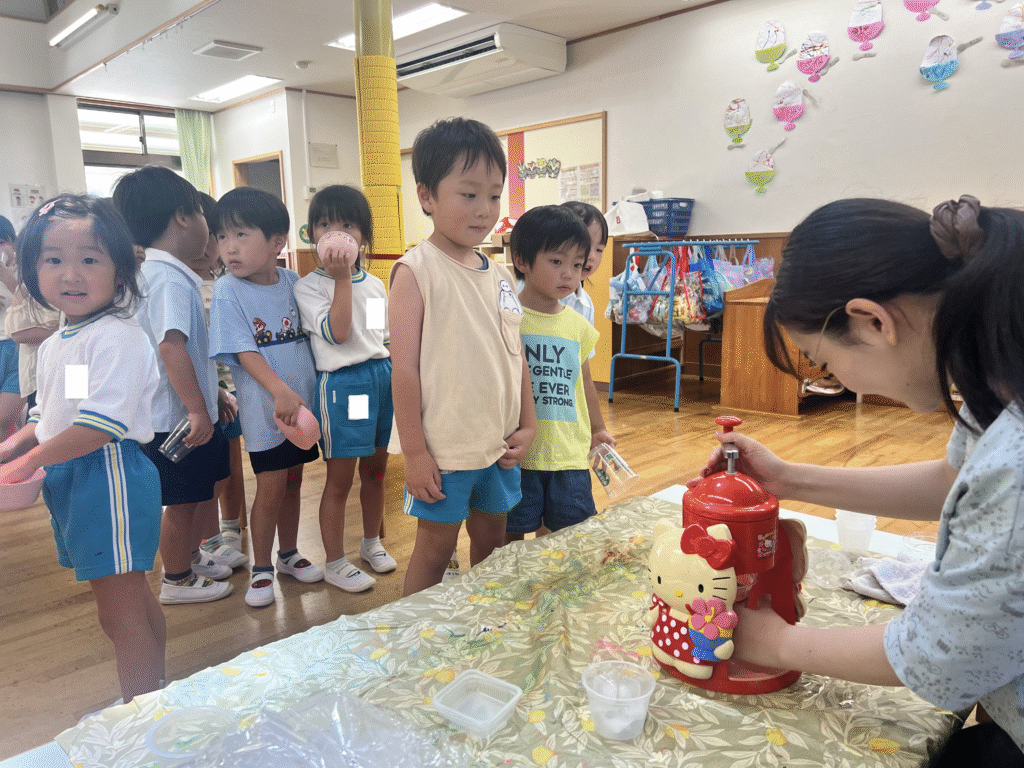 夏の遊び(4歳児年中児) 2025 8/08 ニュース 年長さんの🍧かき氷作りをする様子を見て「やってみたい!」と4歳児… かき氷作り🍧 先生に氷を削ってもらい,色水で色付けしました🎨 「出来上がり〜☺️」 ニュース URLをコピーしました! 夏の遊び(5歳児年長児) こども園事務室の窓から(大成学園各園の先生による合同研修 2025.8.19) コメント コメントする コメントをキャンセルコメント ※ 名前 ※ メール ※ サイト 次回のコメントで使用するためブラウザーに自分の名前、メールアドレス、サイトを保存する。 上に表示された文字を入力してください。 Δ