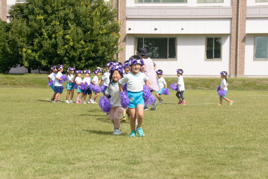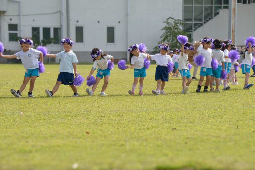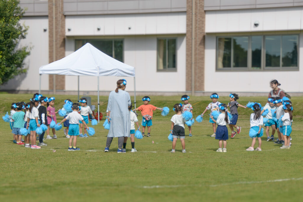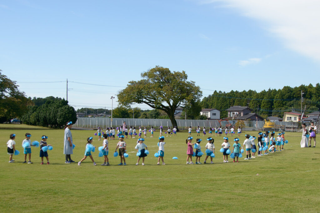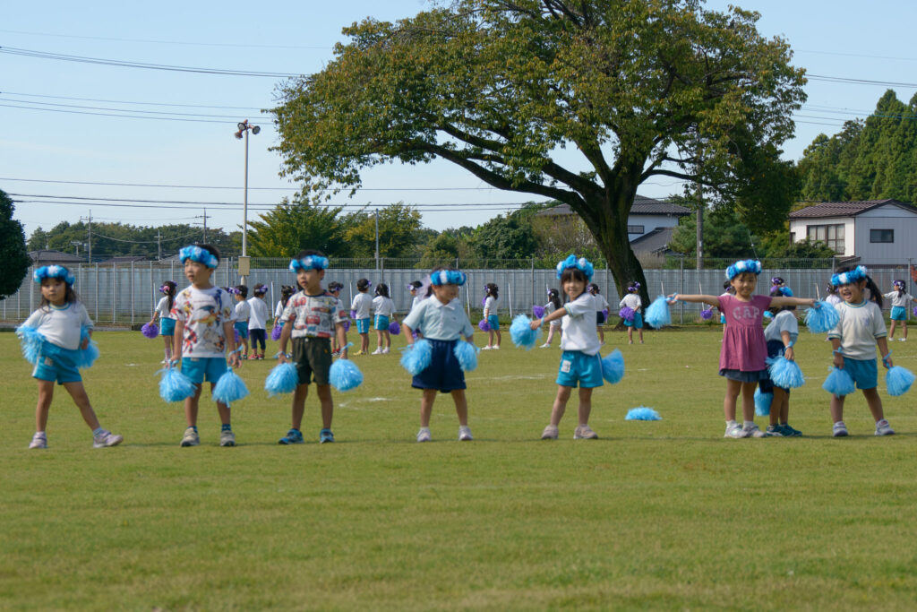 昨日の雨が上がった秋空の下、4歳児さんたちがリズムダンスの練習をしていました🎵
