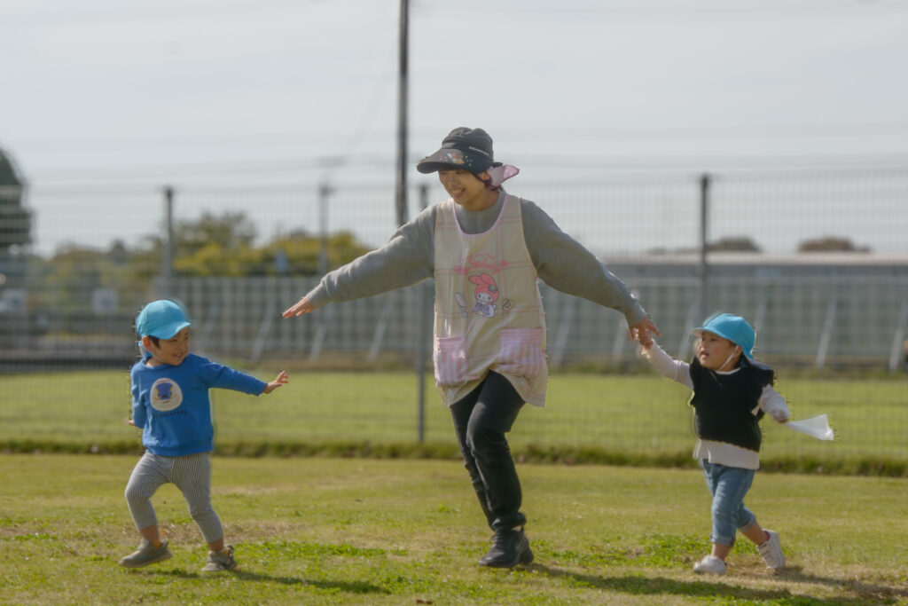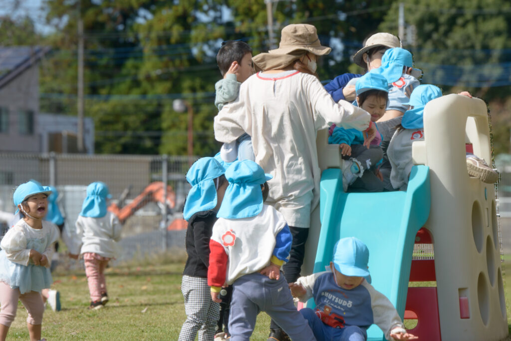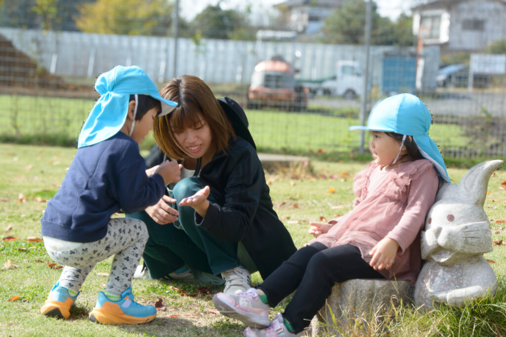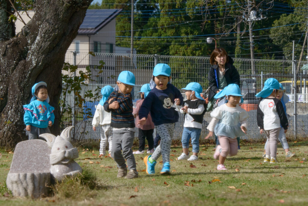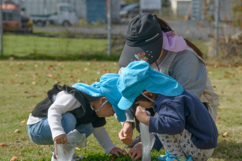 穏やかな秋の午前中、2歳児さんたちが落ち葉や赤い木の実を集めて観察していました🍂