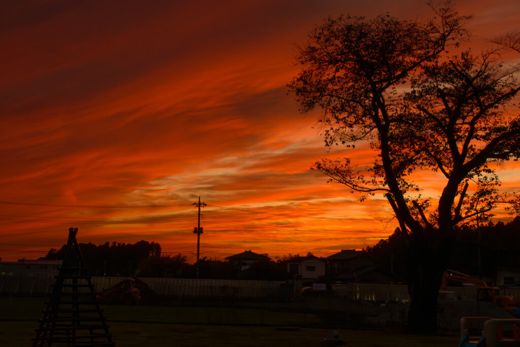 子どもたちが遊んでいた芝生広場の夕焼け、秋も深まり空気が澄んできて奇麗に見えるようになりました🌇