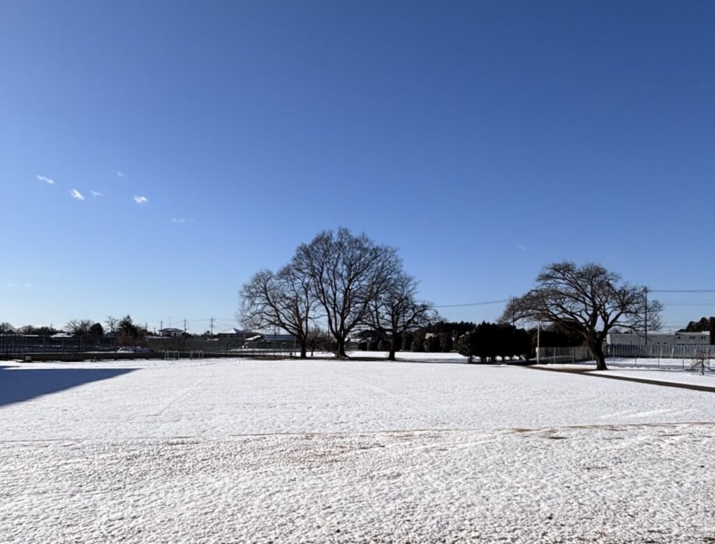 週末の雪で短大のグラウンドは一面銀世界、今日は、楽しい雪遊びの日となりました🏔️