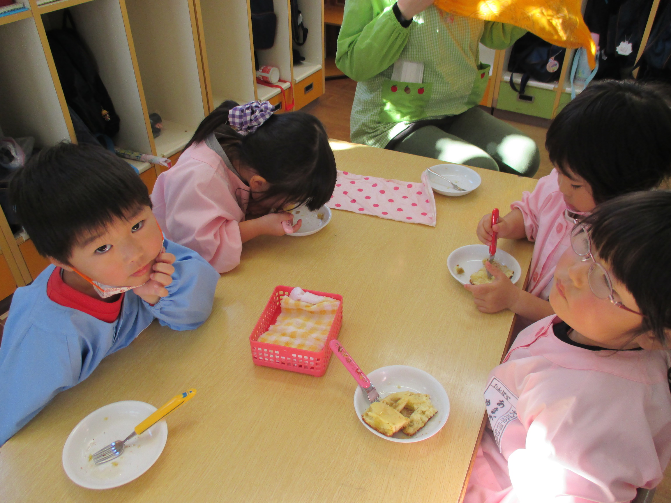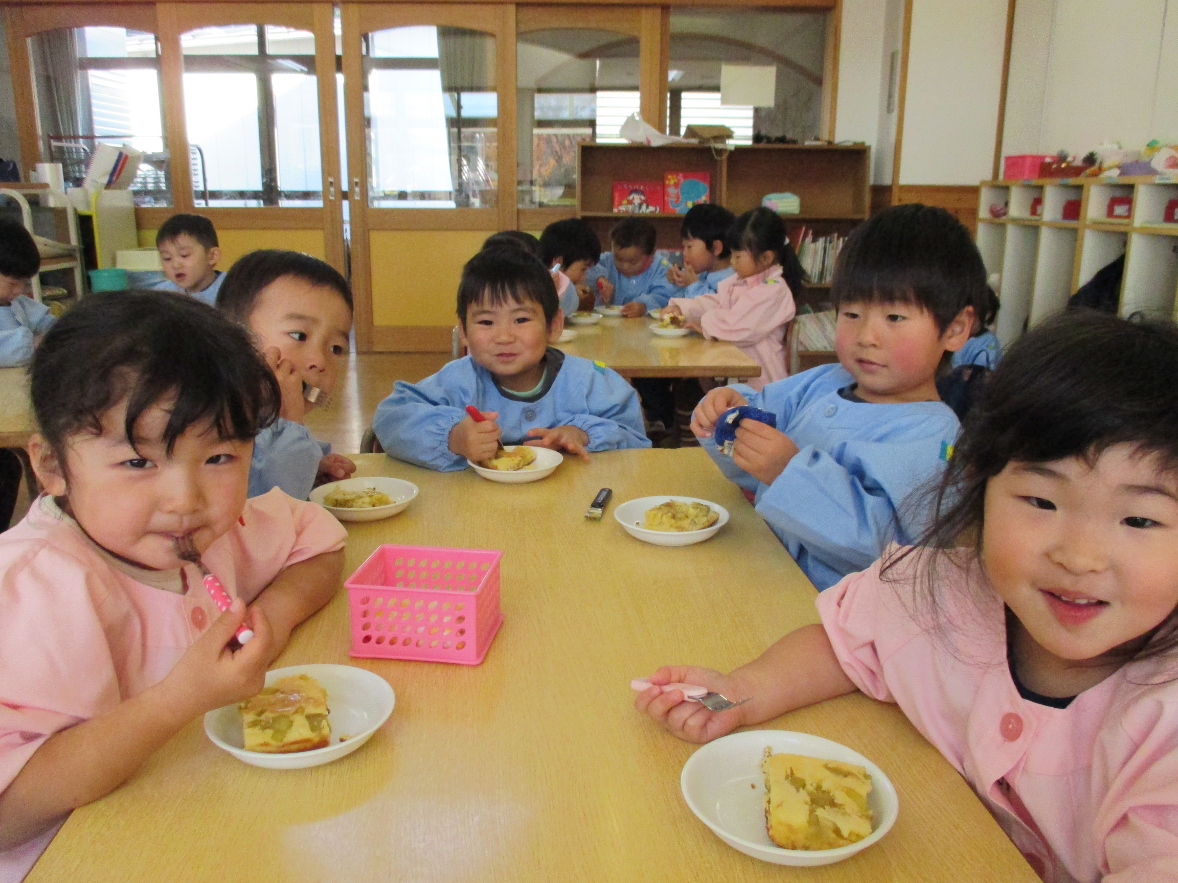 「おいもあま〜い!」「ホットケーキふわふわだね!」