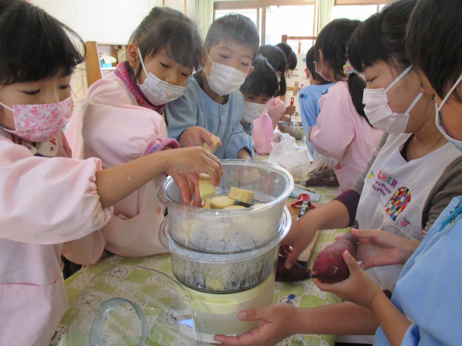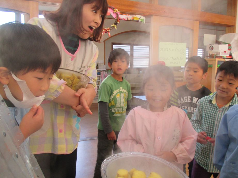 ふじ組では朝から、おイモを蒸かす良いにおいが!