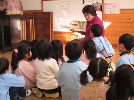 瓜連おはなしの会ルピナスの方々に来園いただき、年長組で読み聞かせをしていただきました。