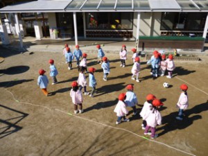 2学期の最後の参観日には、お父さん達とドッチボールを楽しみました。