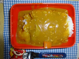 本日はカレーの日です。主食を持参し、みんなでカレーをかけていただきます。