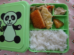 チキンカツ・揚げ餃子・きのこパスタ・れんこんきんぴら・うのはな・大学芋・ごはん