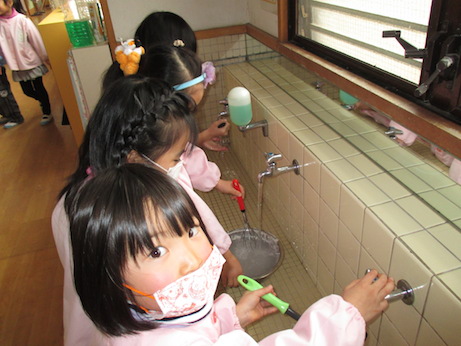 すると年長さんは、得意気に「小麦粉と水を入れてね…」と作り方を教えてくれました。