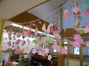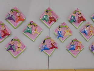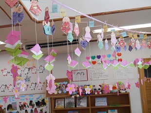 また、幼稚園の保育室には子どもたちが作ったおひな様が飾られています。