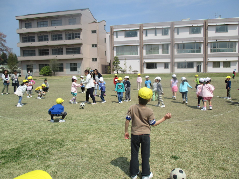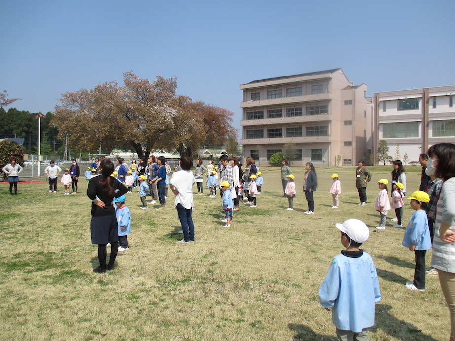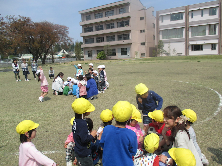 予報を聞いて心配していましたが、お天気に恵まれて短大の芝生で気持ちよく活動することができました。
