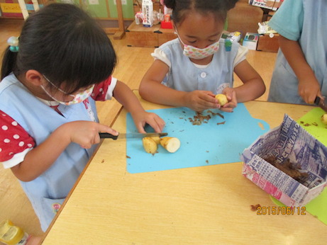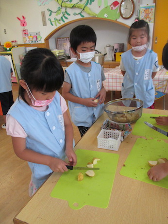今日は、みんなで掘ったジャガイモをお料理しました。