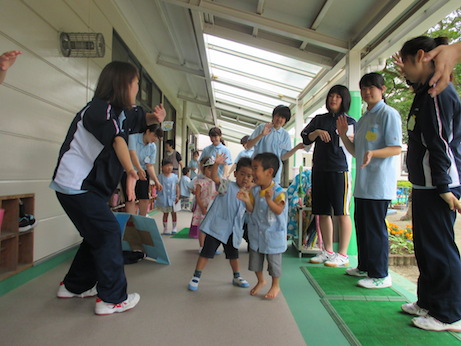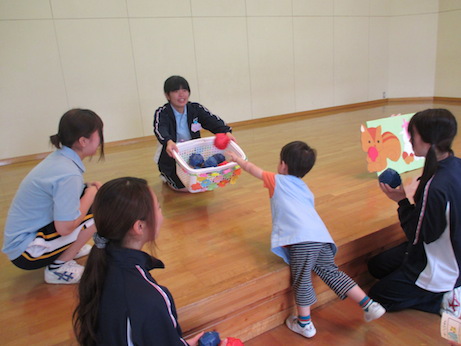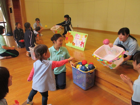 今日は、短大生とふれあう『いっしょにあそぼう』(3歳児)の日でした。