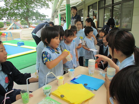 ジュース屋さんコーナーでは、いろんな味があり「どれにしようかな?」と悩む姿も。