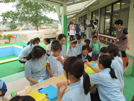 お姉さんたちが幼稚園に来てくれてそれぞれのコーナーで遊びました!!