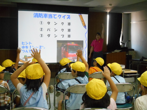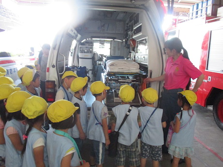 年長組のみんなで、那珂市消防本部の見学に出かけました。