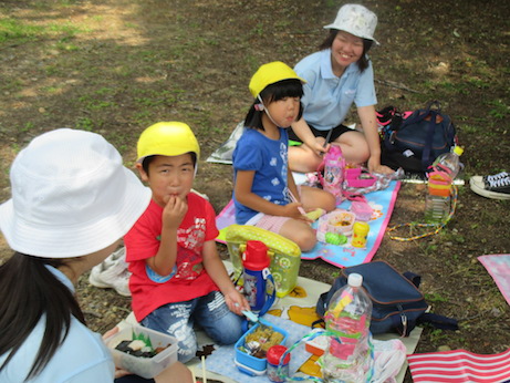あっと言う間にお昼の時間になり、木陰でみんなで食事をしました。