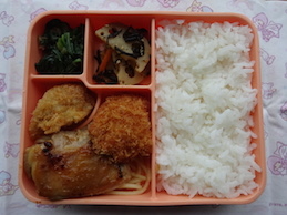 エビマヨカツ・鶏の味噌焼き・キャベツとツナのパスタ・ウィンナーフライ・ひじきとレンコンのカレー炒め