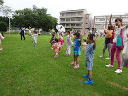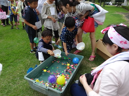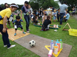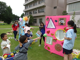 ゲームコーナーでは、的をねらってボールを投げたり、スーパーボールをすくったり、ピンをねらってボールを投げたり、バナナくん体操を踊ったりと楽しそうな姿がたくさん見られました。