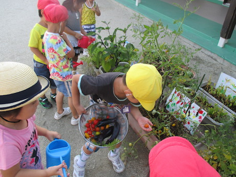 水やり、野菜の収穫をしたよ☆(にじ組) 2015 7/27 ニュース にじ組の子どもたちで、園庭の花や、野菜の水やりをしました。 年長組で育てているミニトマトやナスが大きくなっているのを発見! みんなで収穫しました。 ミニニンジンはもう少しかな? また、たくさんできるといいね♪ ニュース URLをコピーしました! 欠席状況(感染症) 7月23日(木) にじ組 欠席状況(感染症) 7月28日(火) コメント コメントする コメントをキャンセルコメント ※ 名前 ※ メール ※ サイト 次回のコメントで使用するためブラウザーに自分の名前、メールアドレス、サイトを保存する。 上に表示された文字を入力してください。 Δ