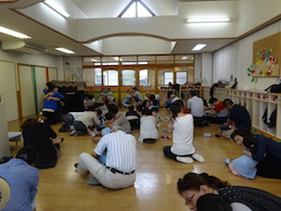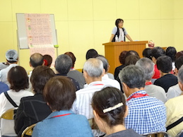 参観後、茨城女子短期大学保育科の海野富江先生をお招きして、「みんなで子育て・孫育て」(公開講座)の話をお聞きしました。みなさん、熱心に聞き入っていらっしゃいました。