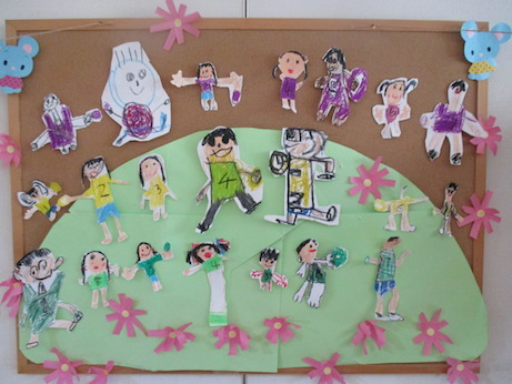 お部屋の壁にはリレーのチームの絵を描いて飾ってあります♪