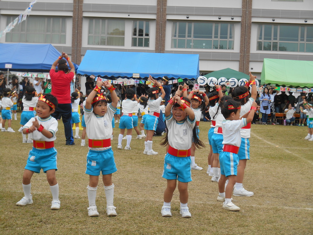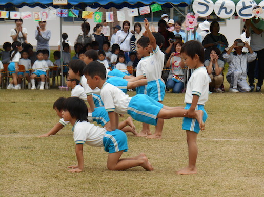 最終種目は、年長組です。体操の鈴木先生や友達と一緒に練習を重ねてきた組体操を披露しました。