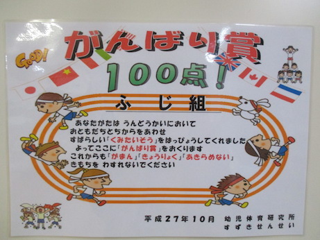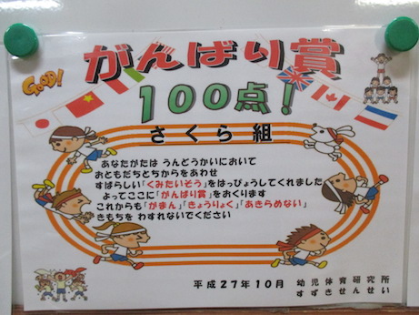 体操〈年長組〉 2015 10/14 ニュース 本日は幼児体育の日でした。 スポーツフェスティバルの組体操を頑張ったごほうびに、鈴木先生から賞状をいただきました☆ 鈴木先生、ご指導ありがとうございました。 ニュース URLをコピーしました! 今日の給食 10月14日(水) 欠席状況(感染症) 10月15日(木) コメント コメントする コメントをキャンセルコメント ※ 名前 ※ メール ※ サイト 次回のコメントで使用するためブラウザーに自分の名前、メールアドレス、サイトを保存する。 上に表示された文字を入力してください。 Δ