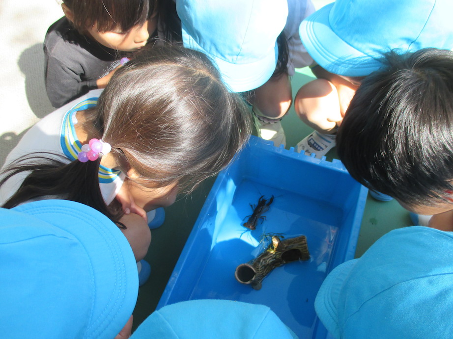 先月、ひまわり組で育てているザリガニが卵を産みました。
