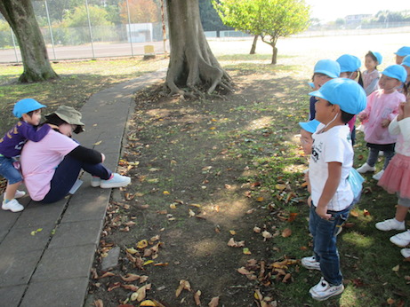 その後も、昆虫を探したり落ち葉を拾ったりと、一人ひとり宝物を見つけたようです。