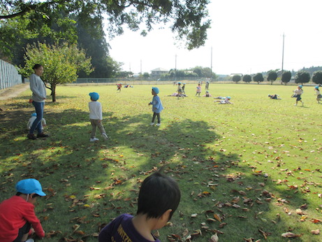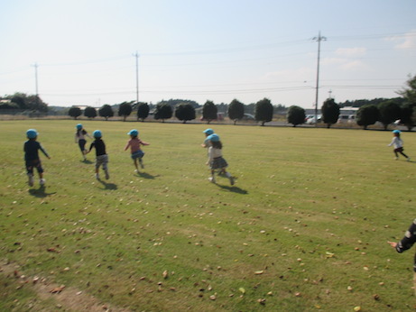 「わあー」「逃げろー」と言いながら広い芝生を走り回りました。