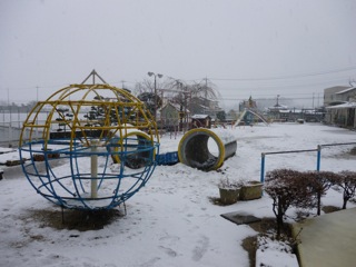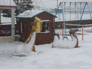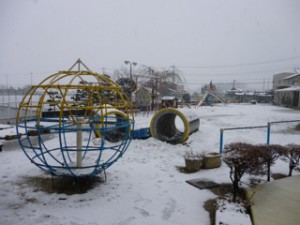 本日は、朝からずっと雪が降りました。春の雪ですので、水分が多く含んだ雪のようでした。けれども、園児たちは一辺した自然の変化に大喜びでした。ぎゅっと雪を握りしめ、ころがしながら雪だるまを作ったり、雪合戦をしてあそびました。