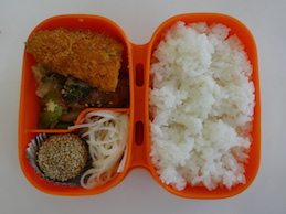 白身フライ・のりごまチキン・野菜と卵の炒め物・豆腐ナゲット・シルバーサラダ・ごまだんご・ごはん