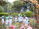 また、いろいろな種類の色鮮やかなバラの花や香りに驚いている様子が見られました。