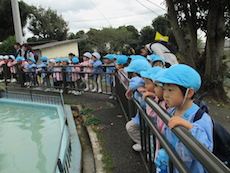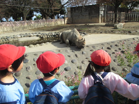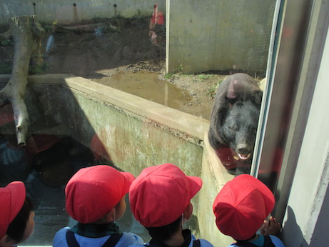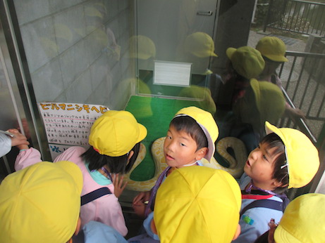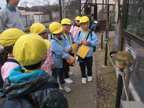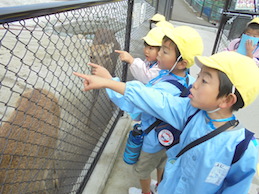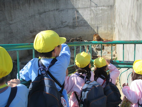 年中組は、動物の鳴き声や動きをまねしたり、名前を呼んだりして見学しました。