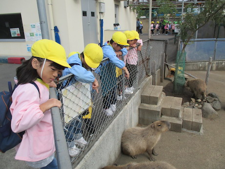 年少組は、お友達と仲良く手をつないで動物たちに会いに行きました!
