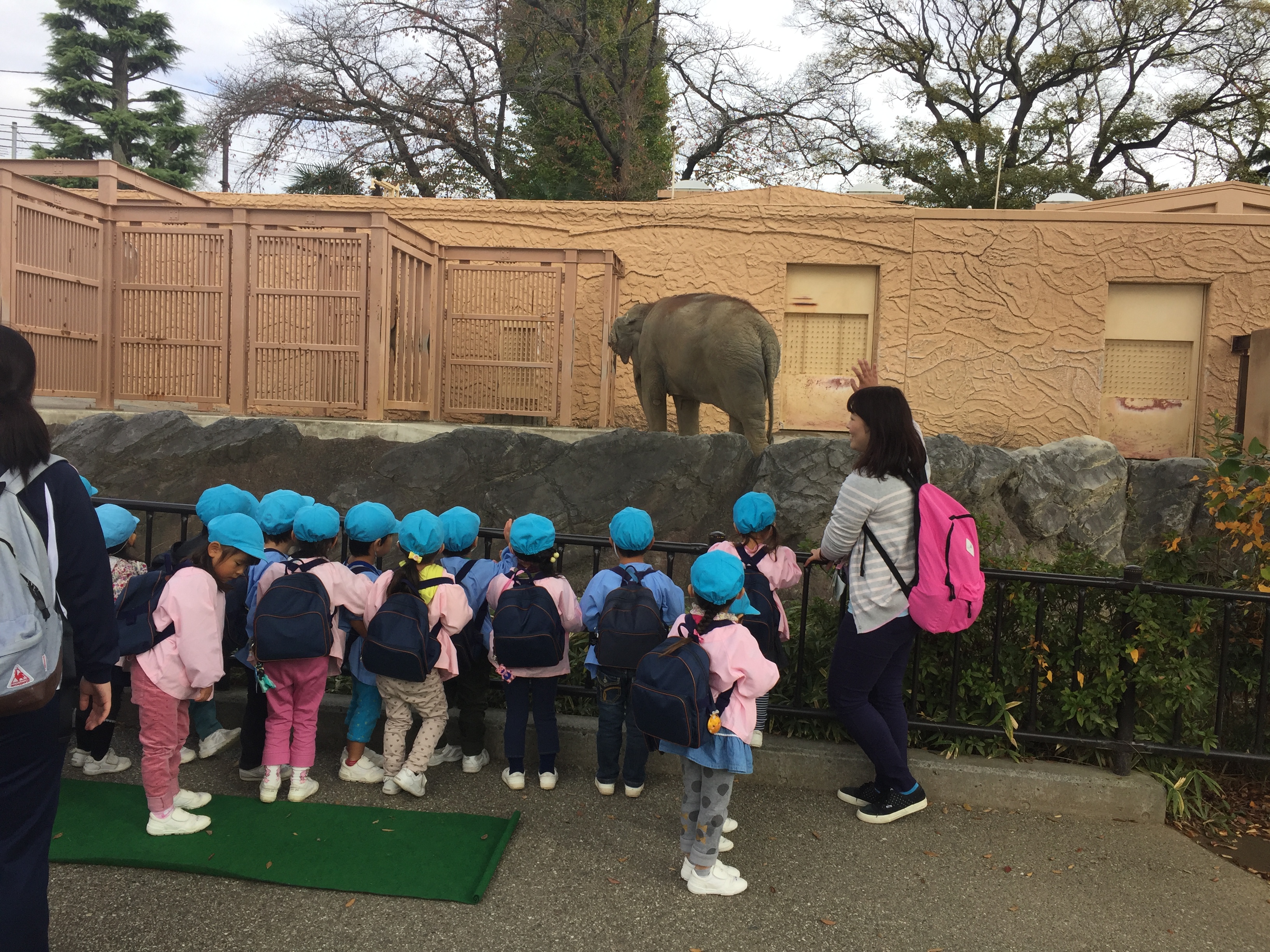 動物園に着くと、大きなゾウが出迎えてくれました。
